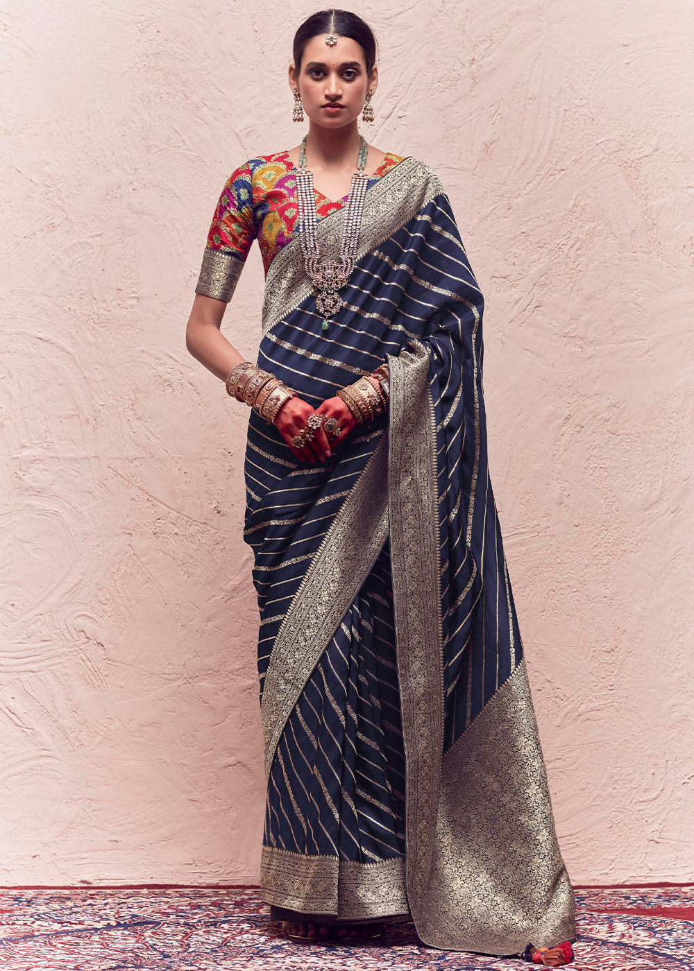 Admiral Blue Banarasi Jamawar Woven Silk Saree