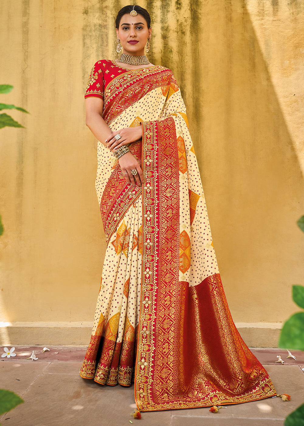 Alabaster White Dola Silk Saree with Beautiful Embroidery work: Wedding Edition