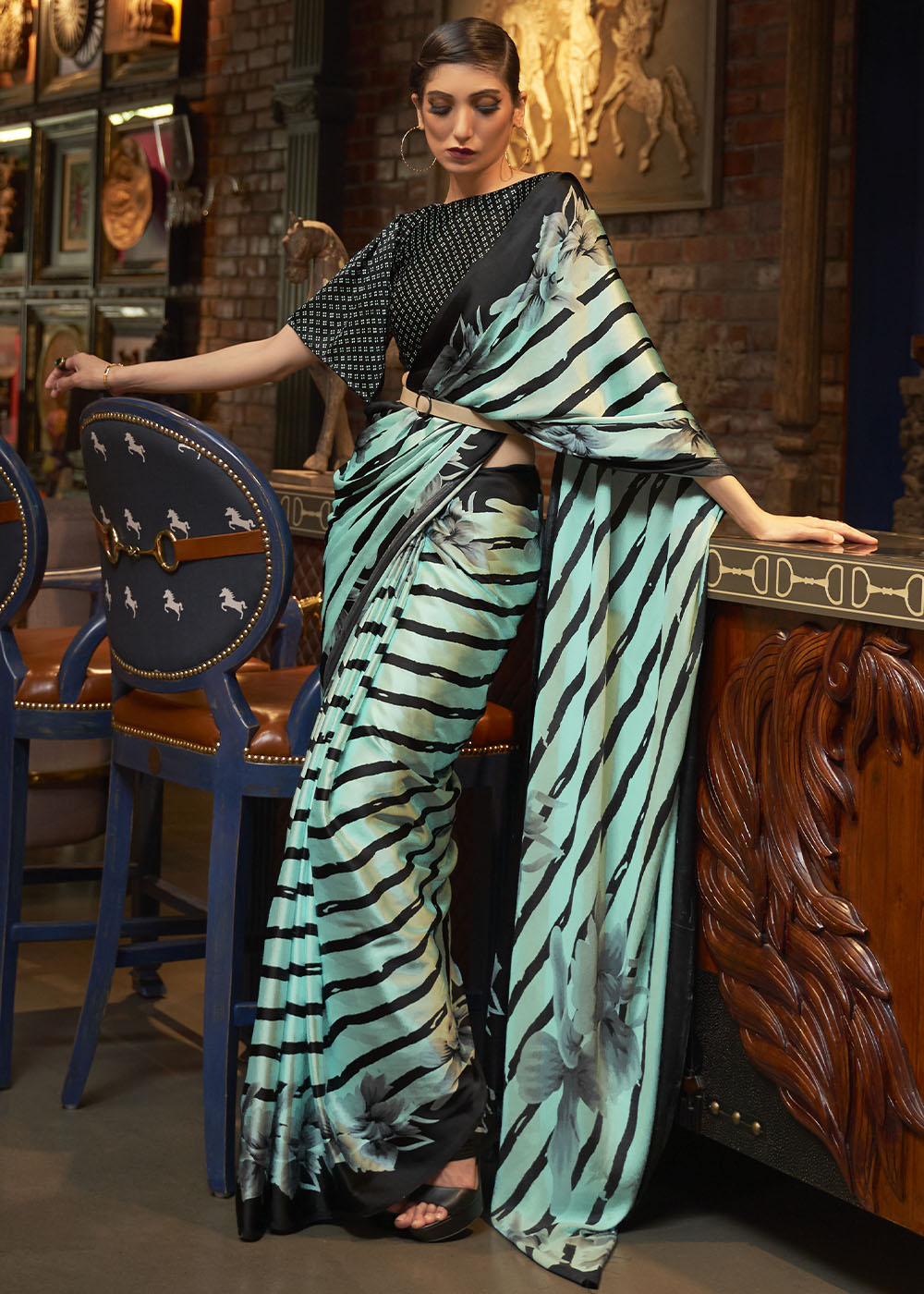 Aquamarine Blue Handloom Woven Satin Silk Saree