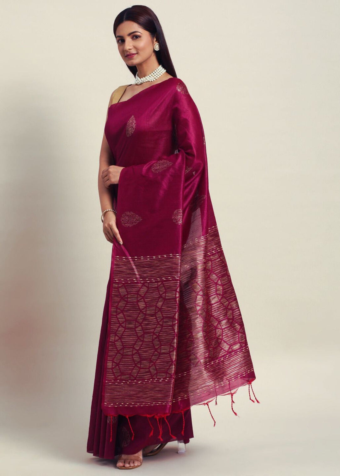 Wine Solid Design Cotton Silk Saree