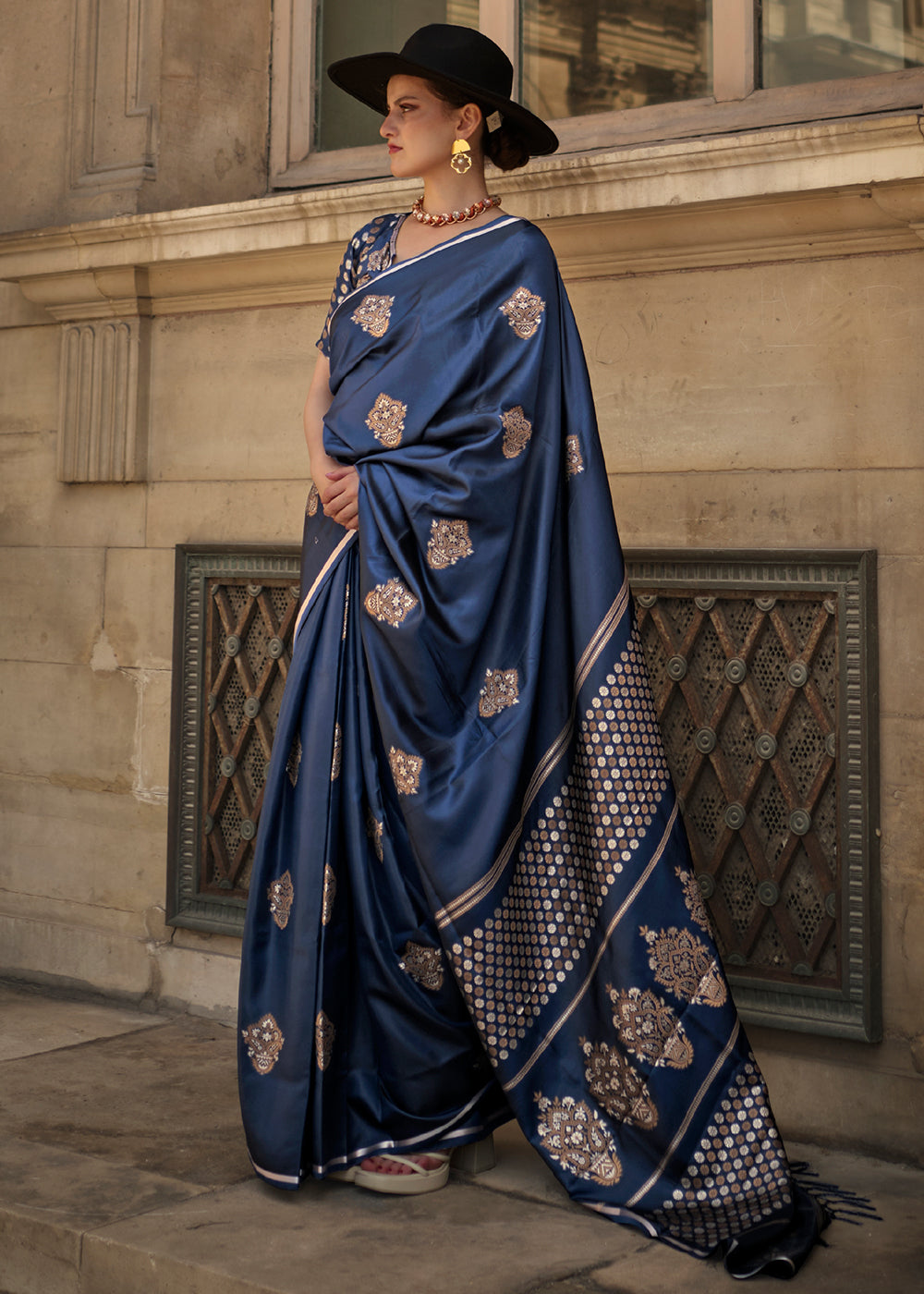 Yale Blue Handloom Woven Satin Silk Saree