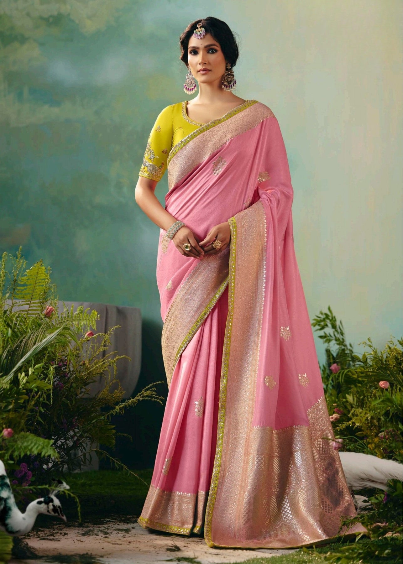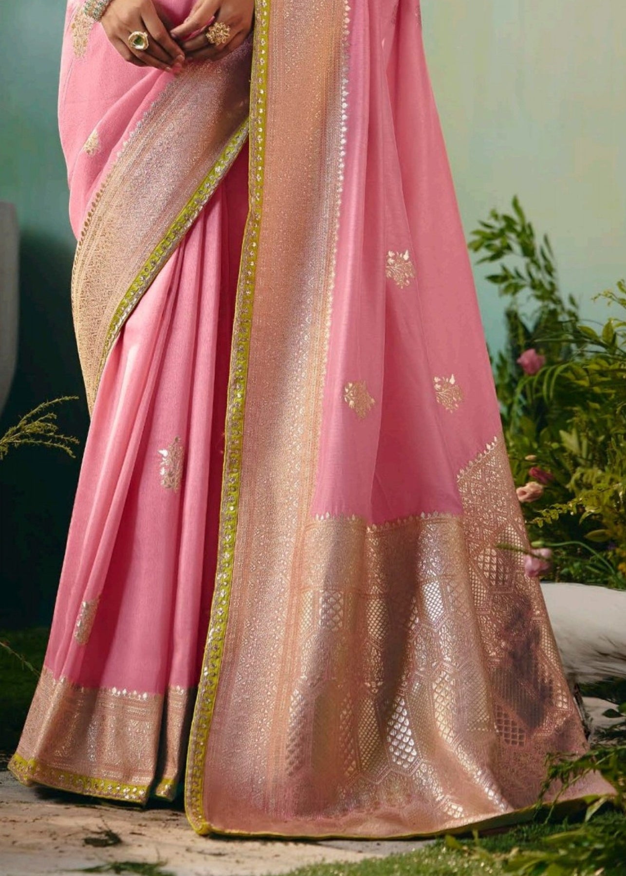 Baby Pink Viscose Dola Silk Saree