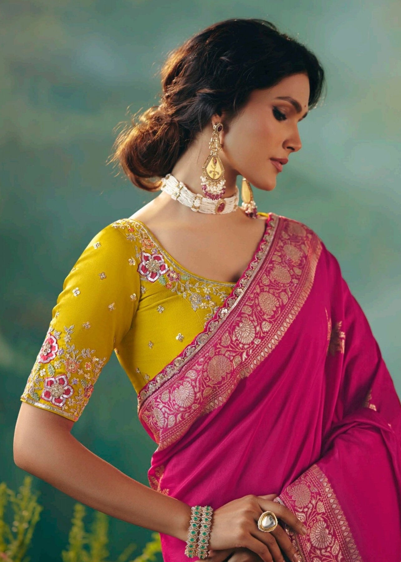 Fuchsia Pink Viscose Dola Silk Saree