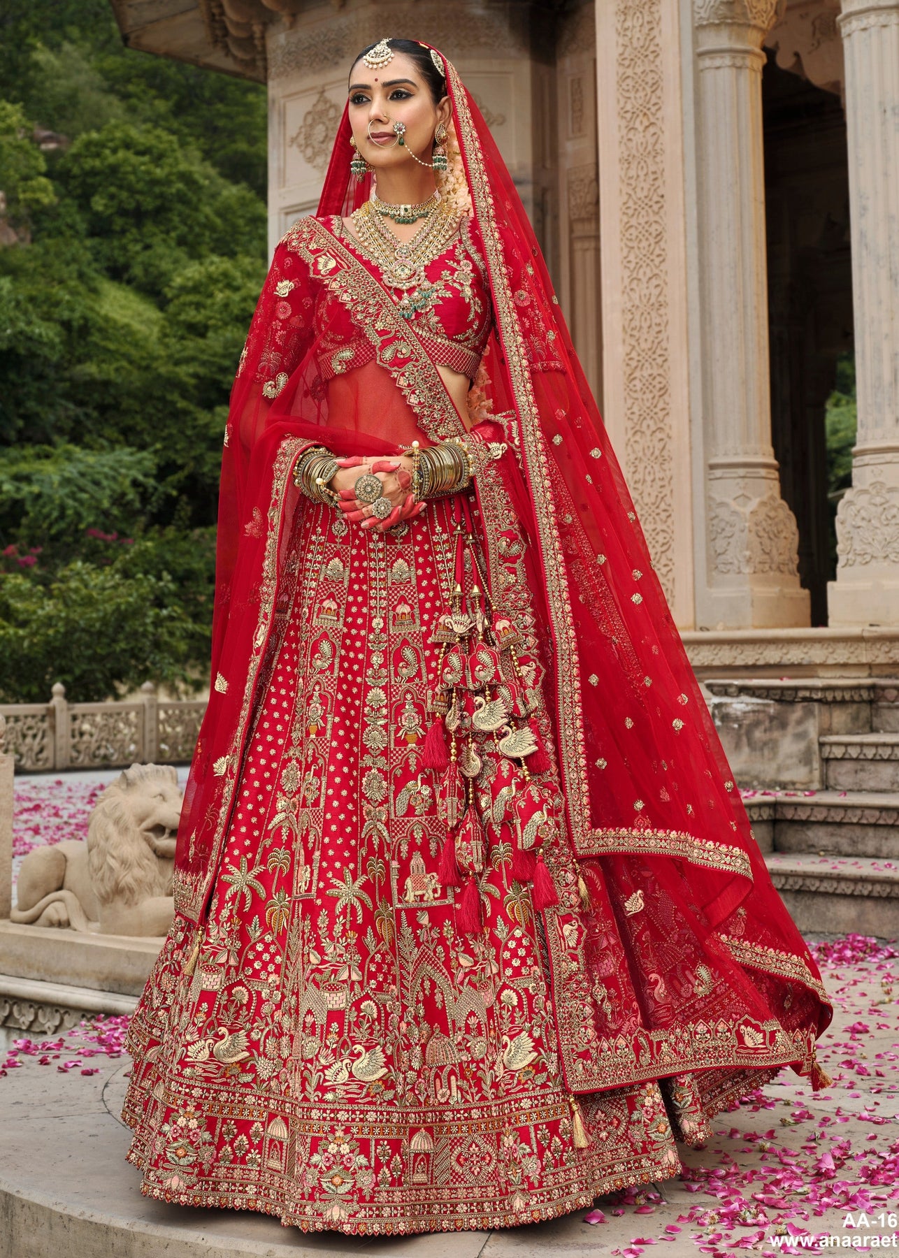 This Currant red bridal lehenga features rich blended silk fabric and intricate khatli & embroidery detailing. The full-volume skirt spans paired with a matched blouse and a soft net dupatta ideal for spectacular swirls. Delicately designed for the bride who seeks classic charm with modern poise, it blends traditional craftsmanship with contemporary colour. Whether it’s your wedding day or the grand reception, this statement piece promises unforgettable elegance.