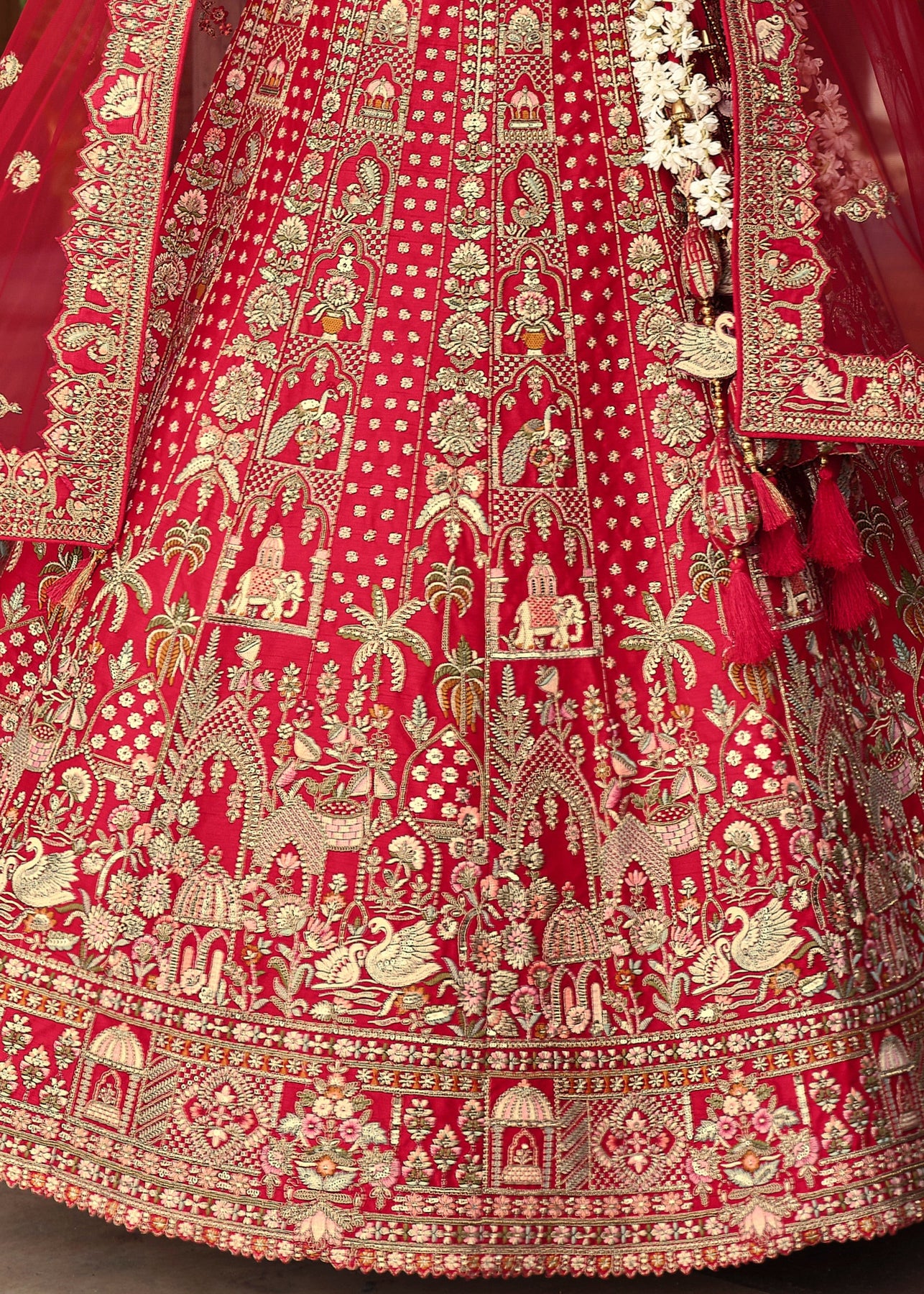 Currant Red Heavy Bridal Silk Lehenga With Khatli And Embroidery Work