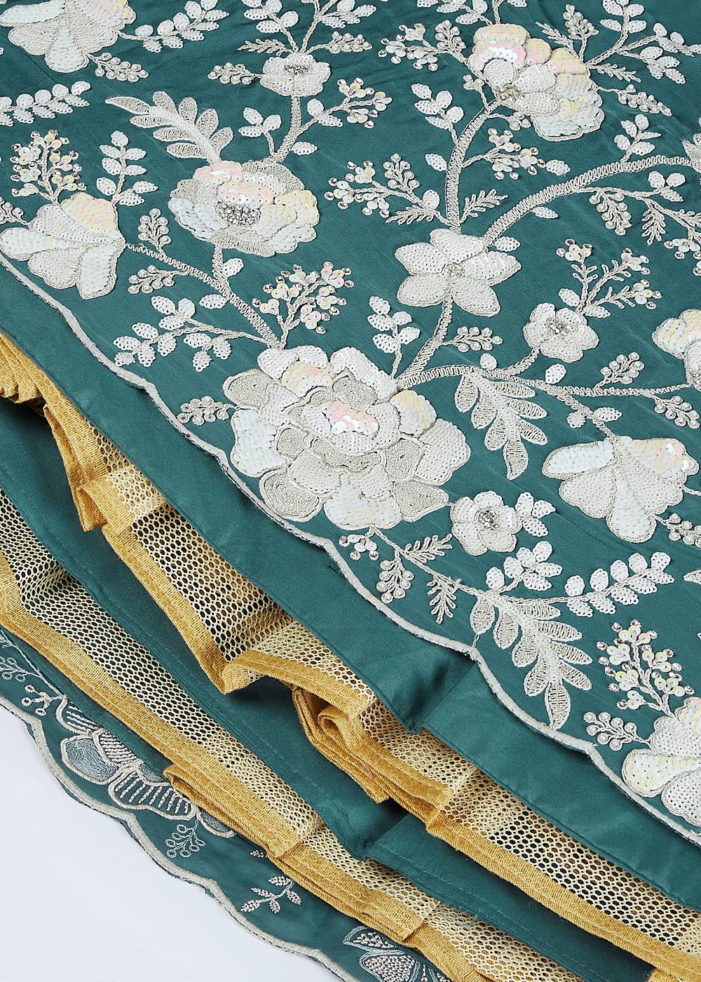Dark Cyan Blue Georgette Lehenga Choli with Sequins & Thread Embroidery work