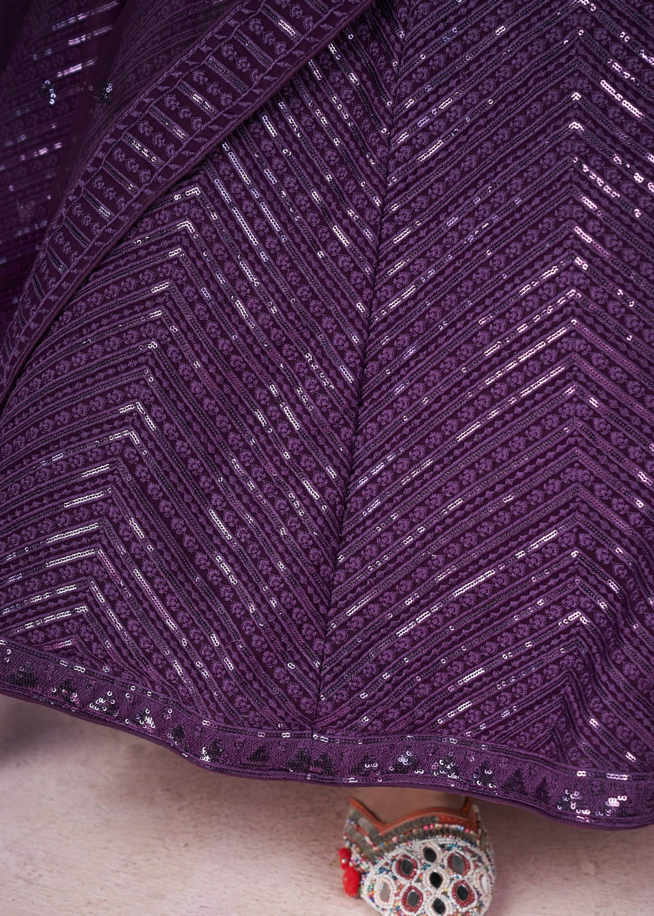 Dark Purple Georgette Lehenga Choli With Sequins And Thread Embroidery Work