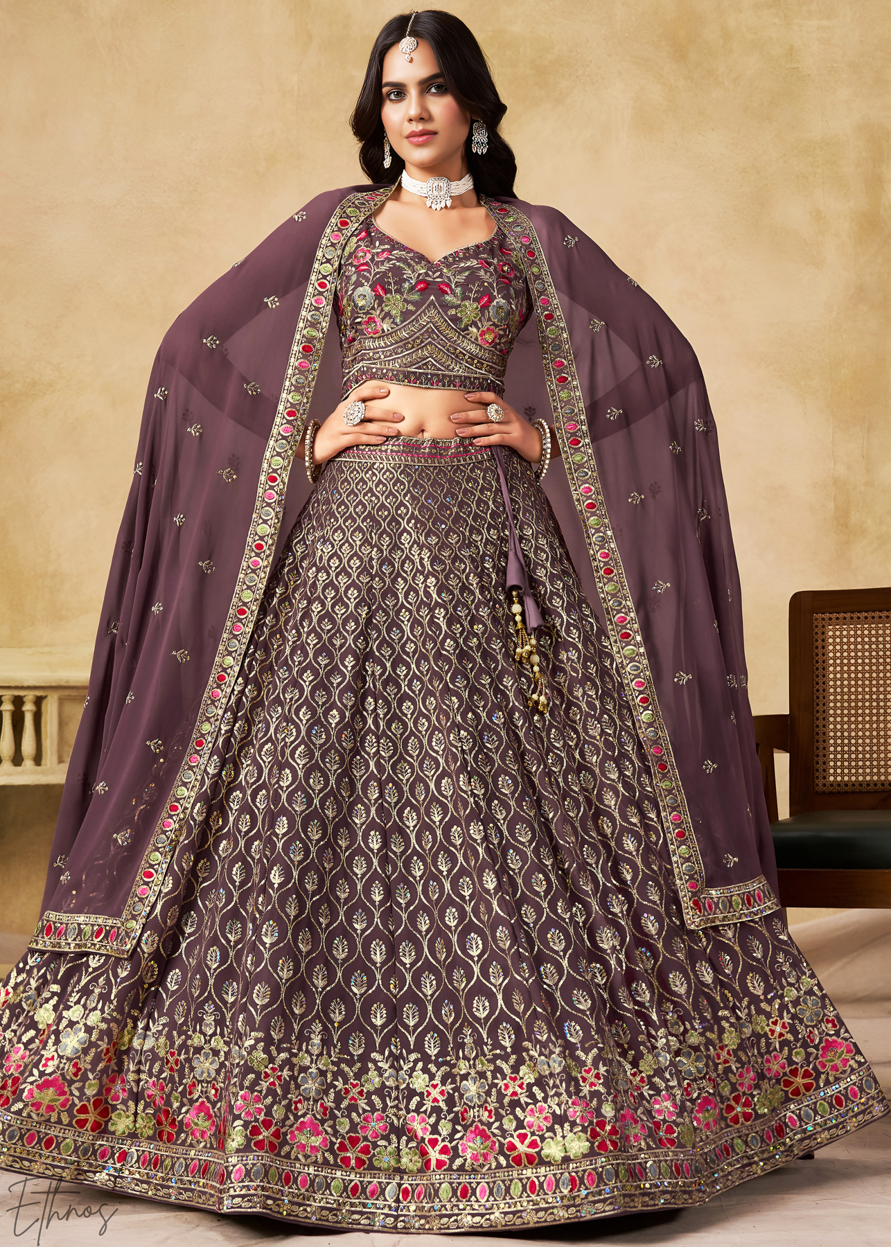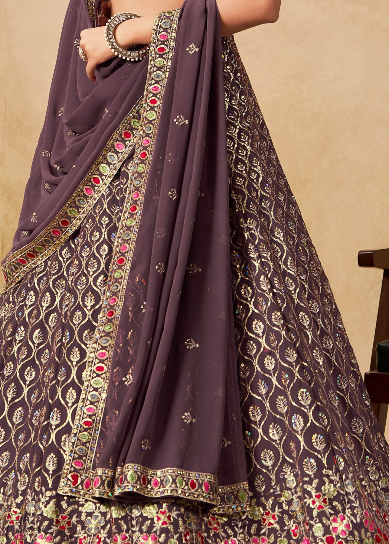 Dusty Purple Sequins Embroidered Georgette Lehenga