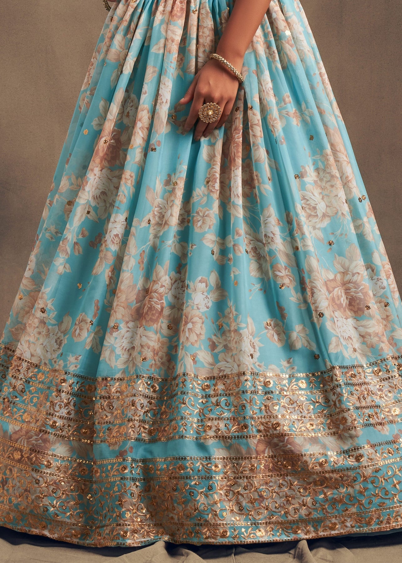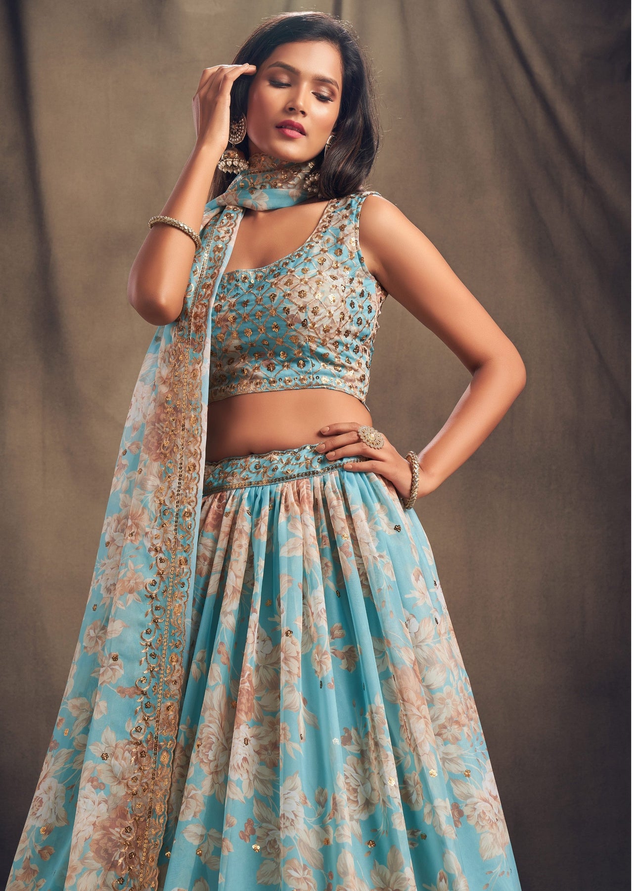Sky Blue Organza Lehenga with Dupatta