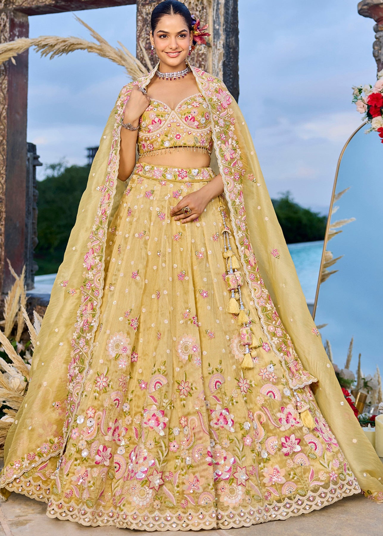 Yellow Organza Lehenga Choli with Beads & Sequince Embroidered