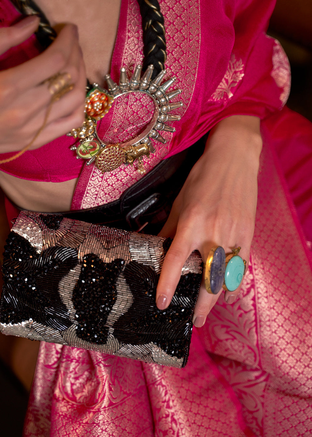 Cerise Pink Woven Khaddi Georgette Saree