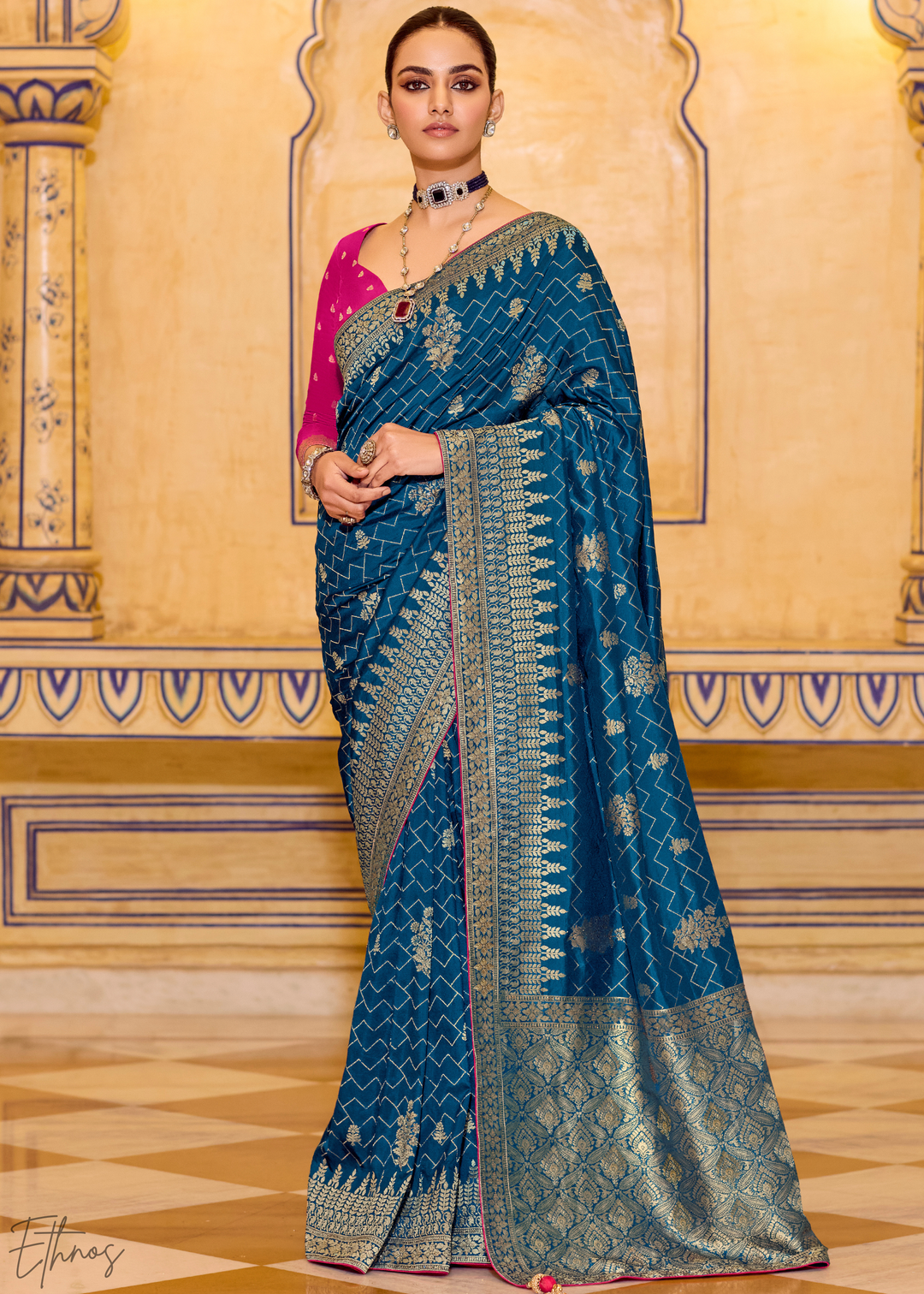 Fuchsia Pink Gota Patti Bamber Silk Saree