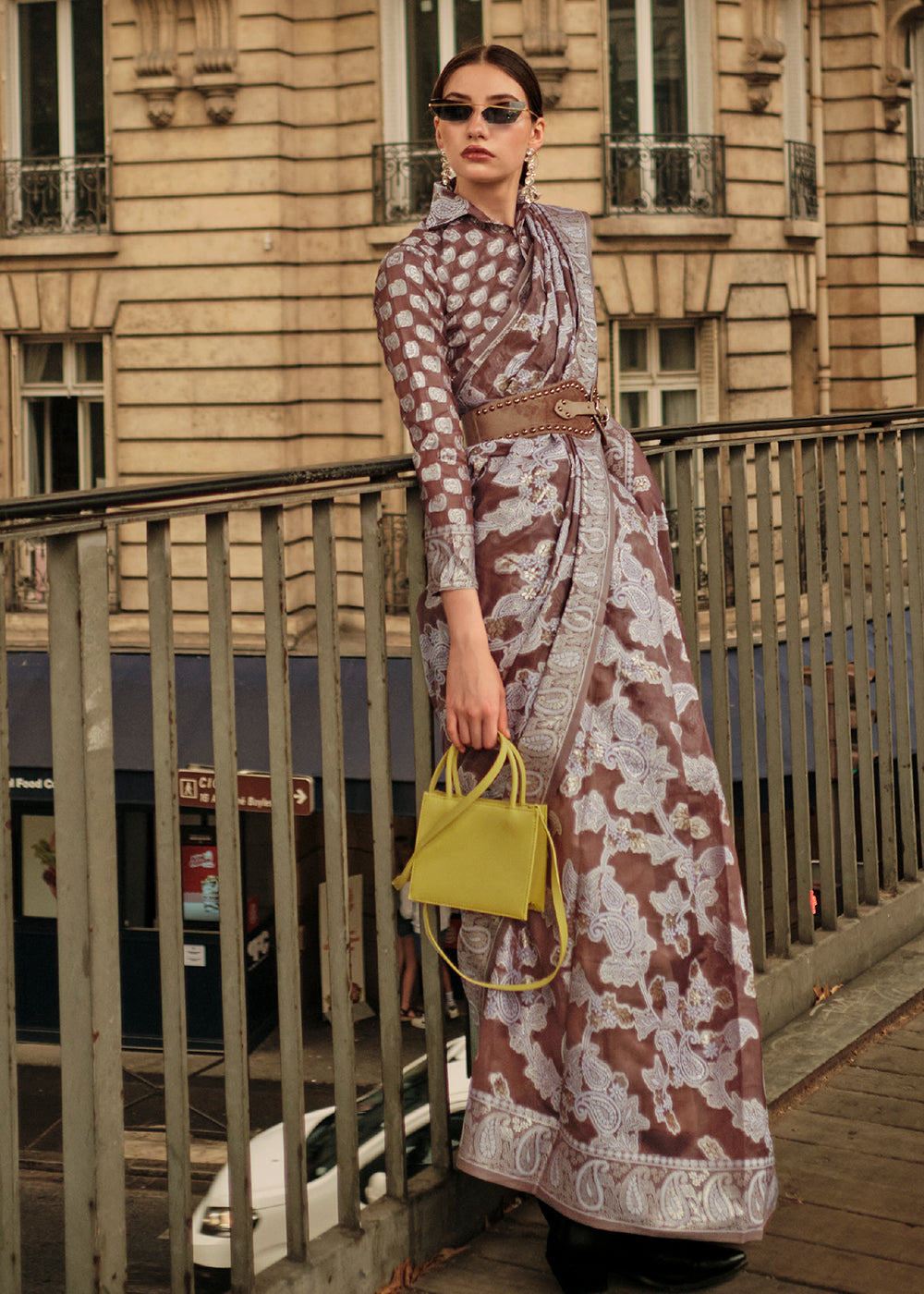 Shades Of Orange Digital Printed Crepe Silk Saree