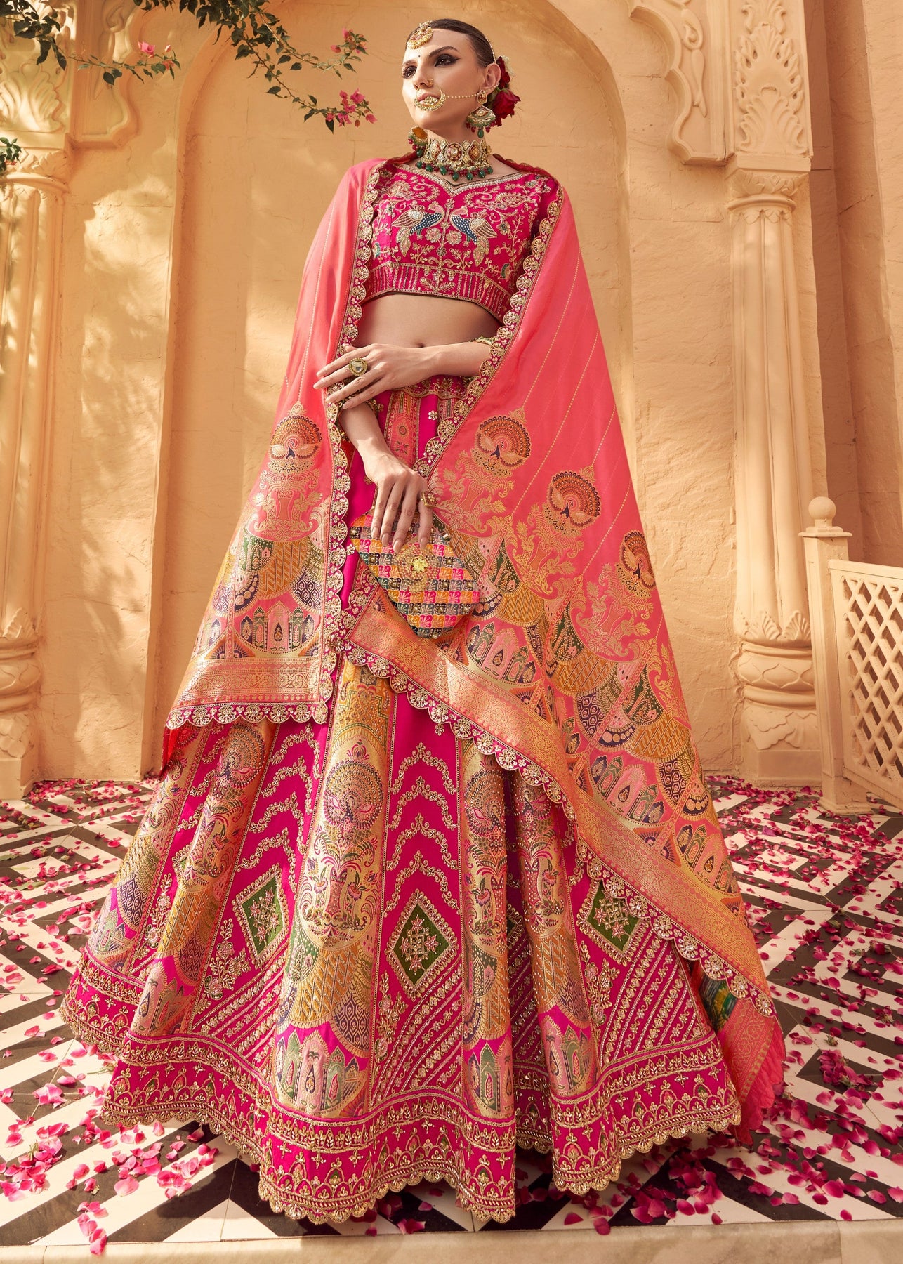 Candy Pink Banarasi Silk Lehenga Choli With Zarkan And Cut Work