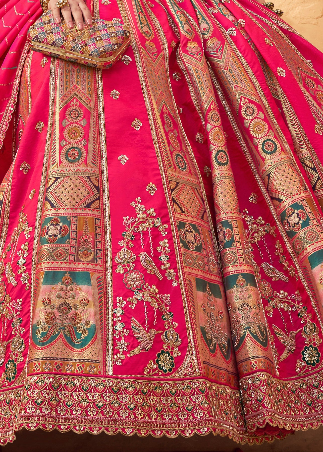 Neon Pink Banarasi Silk Lehenga Choli With Zarkan And Cut Work