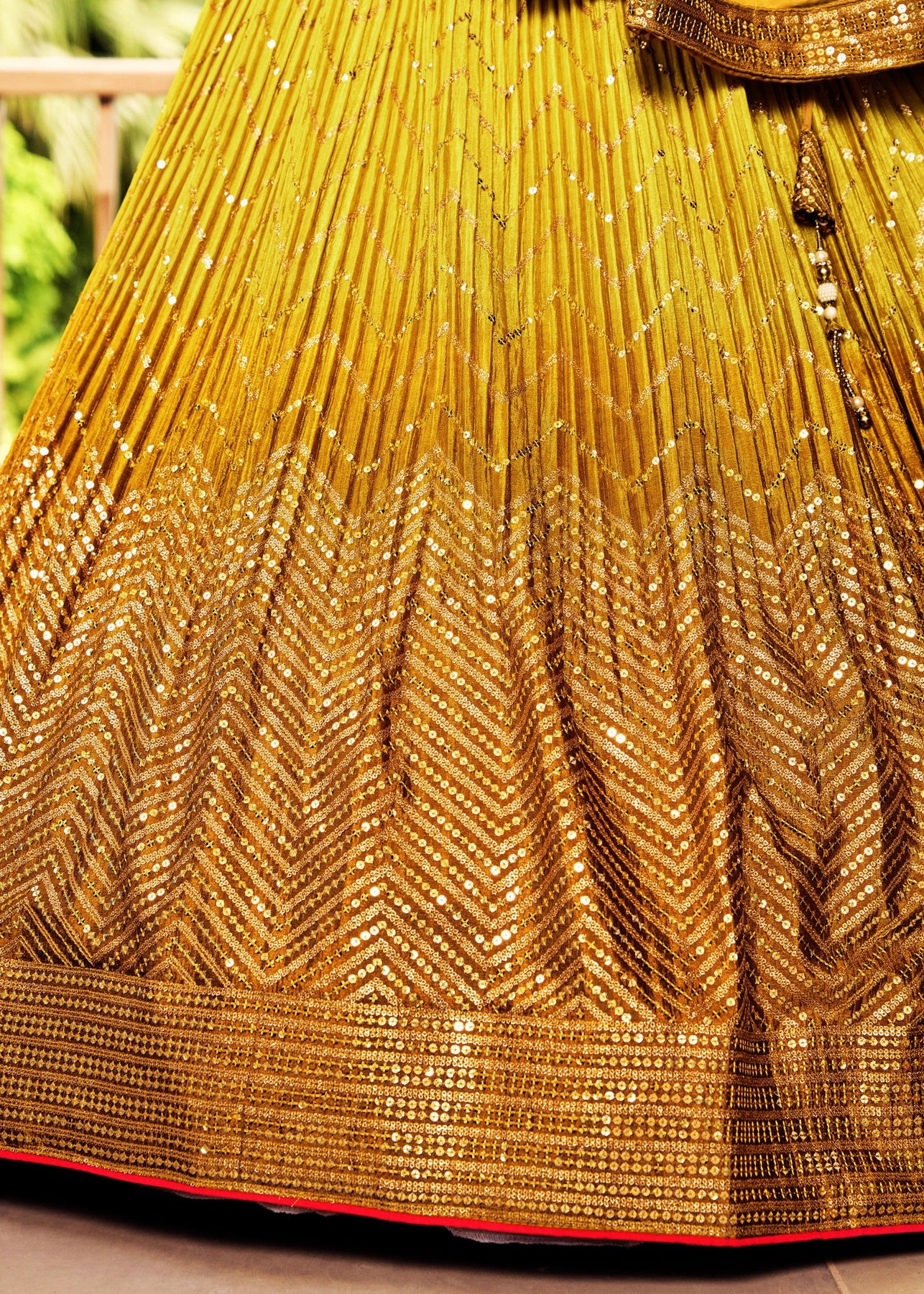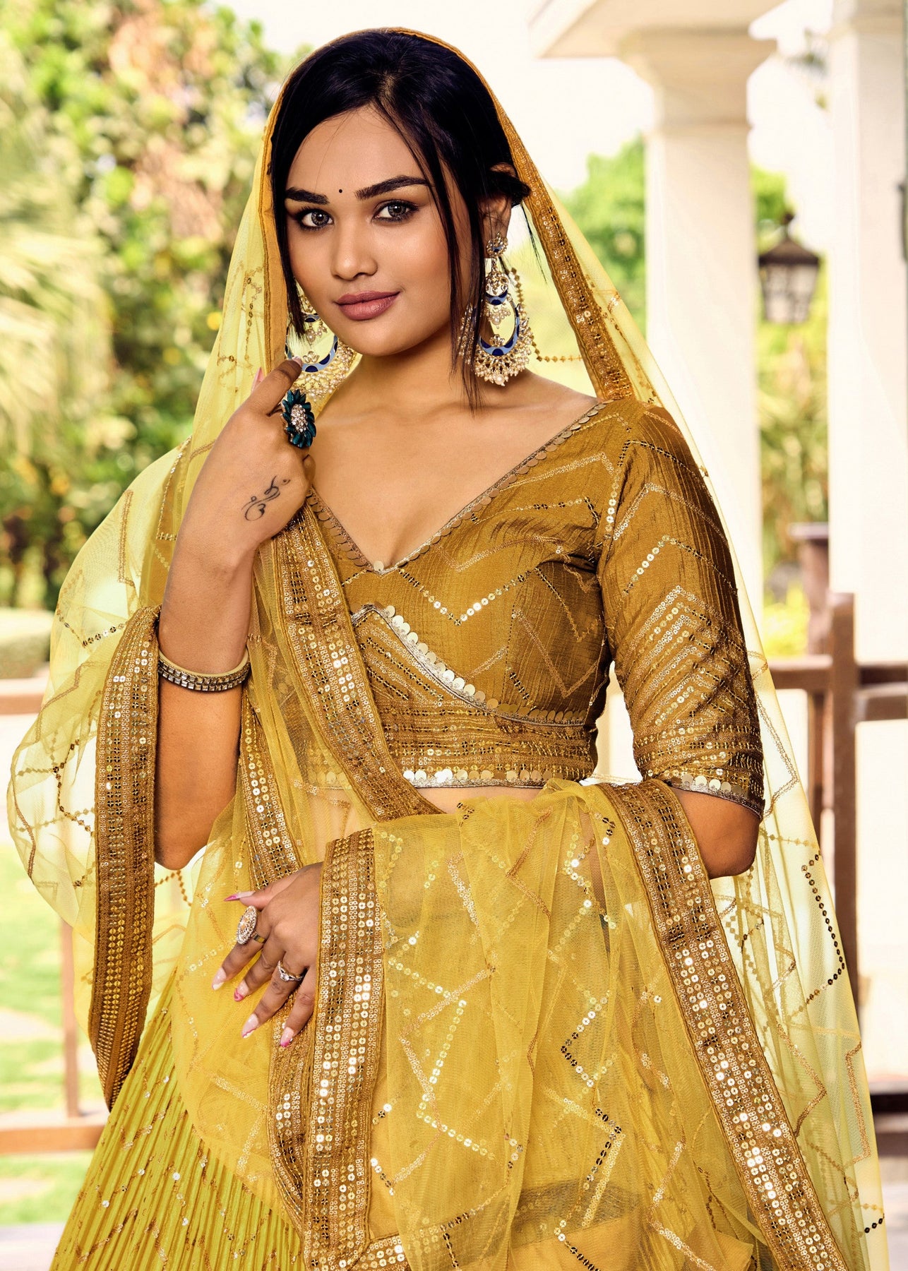 Butterscotch Yellow Chinon Silk Lehenga With Sequence and Thread Embroidery Work