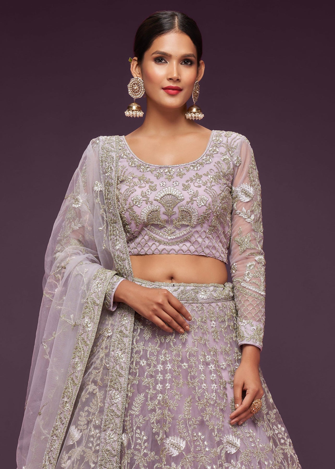 Elevate your ethnic wardrobe with this exquisite Dusky Orchid Lehenga set, where traditional artistry meets modern elegance.