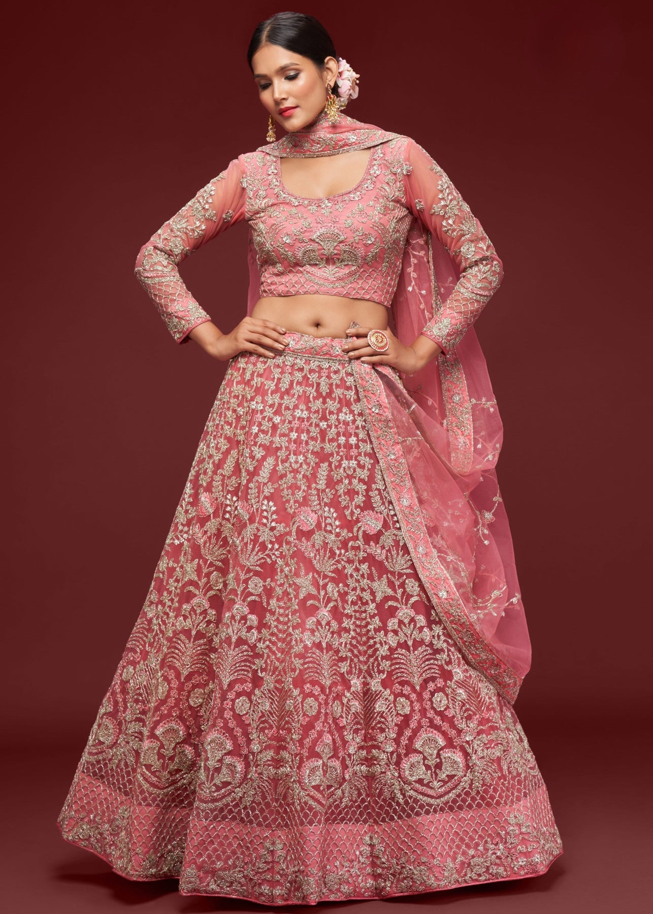 Fantasy Rose Soft Net Lehenga with Thread, Zari, Badla and Glitter Dori Embroidery Work