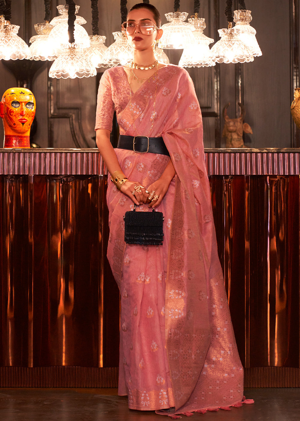 Shades Of Pink Copper Zari Woven Linen Silk Saree