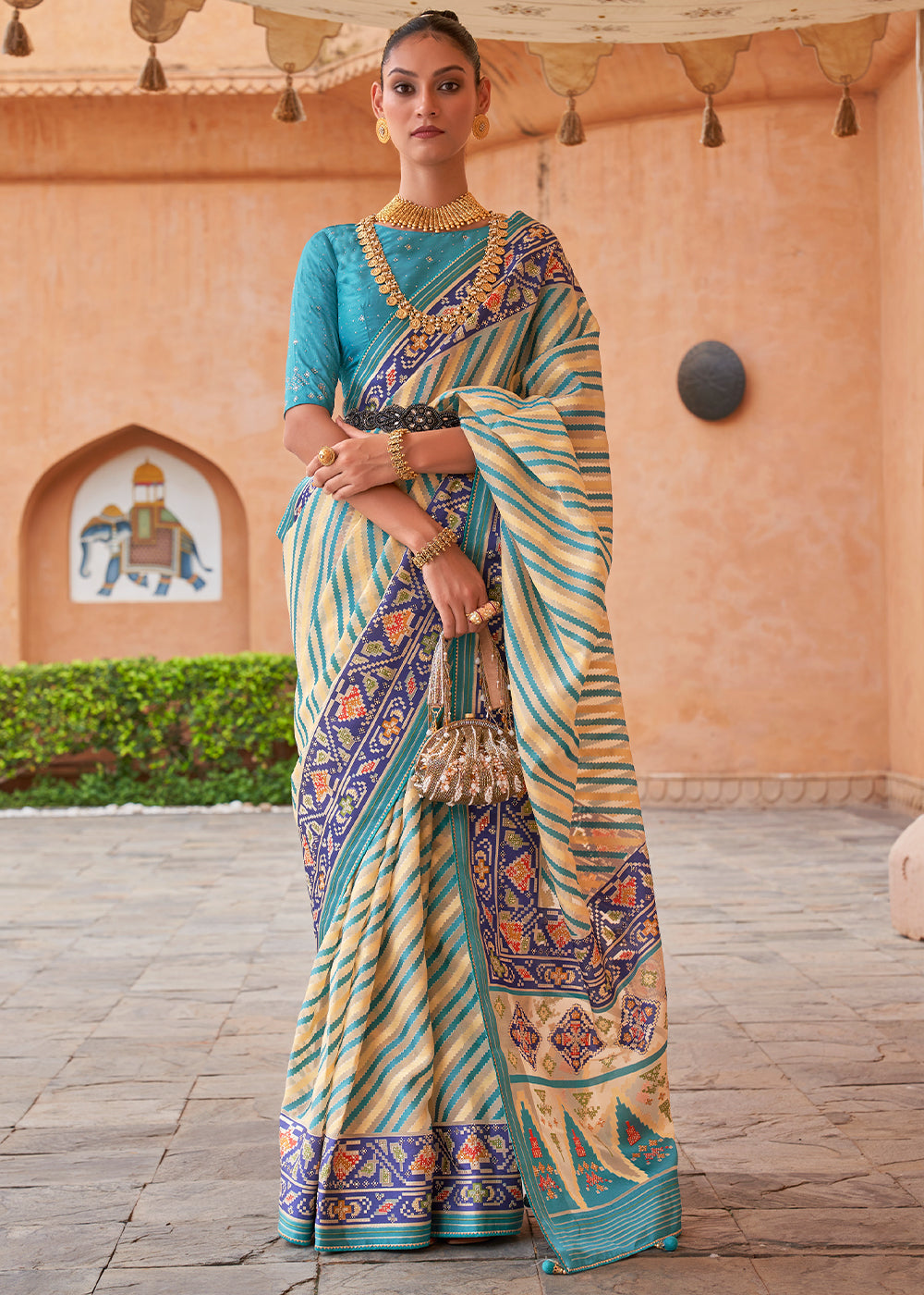The mosaic of intricate hand embroidery featuring masterful work by our craftspeople along with pearls and zardosi over a silk canvas makes the patola a breath-taking choice for your special day. As many textile enthusiasts know, patola weaving (which involves the intricate art of matching dyed warp and weft threads on the handloom) requires masterful skill and meditative work.