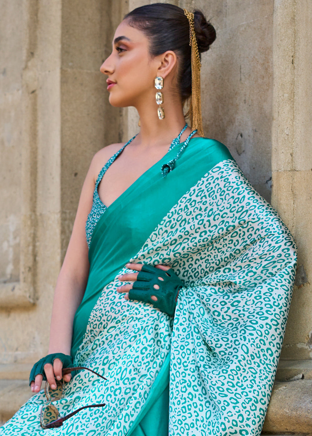 Pacific Blue Contemporary Printed Satin Crepe Saree