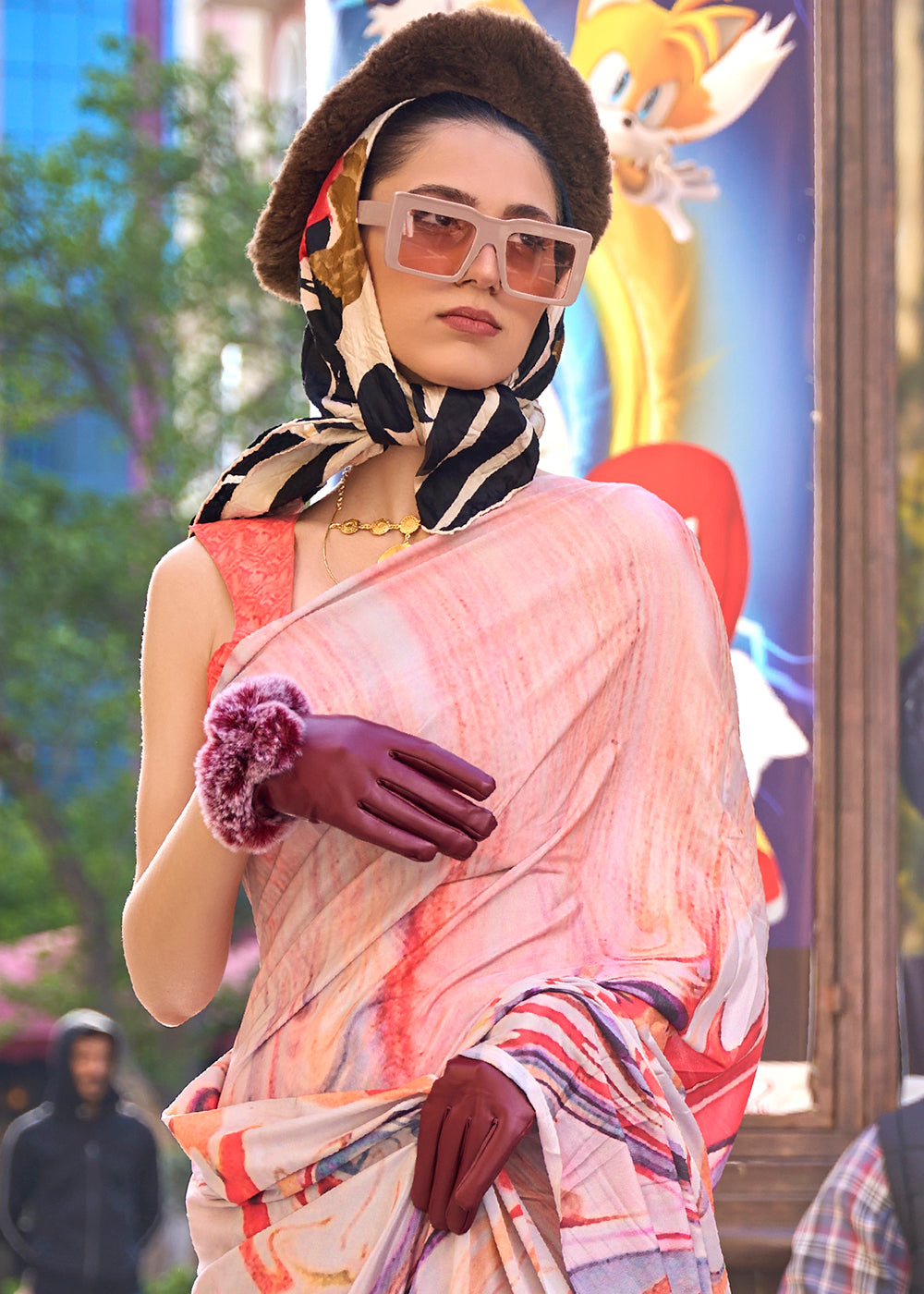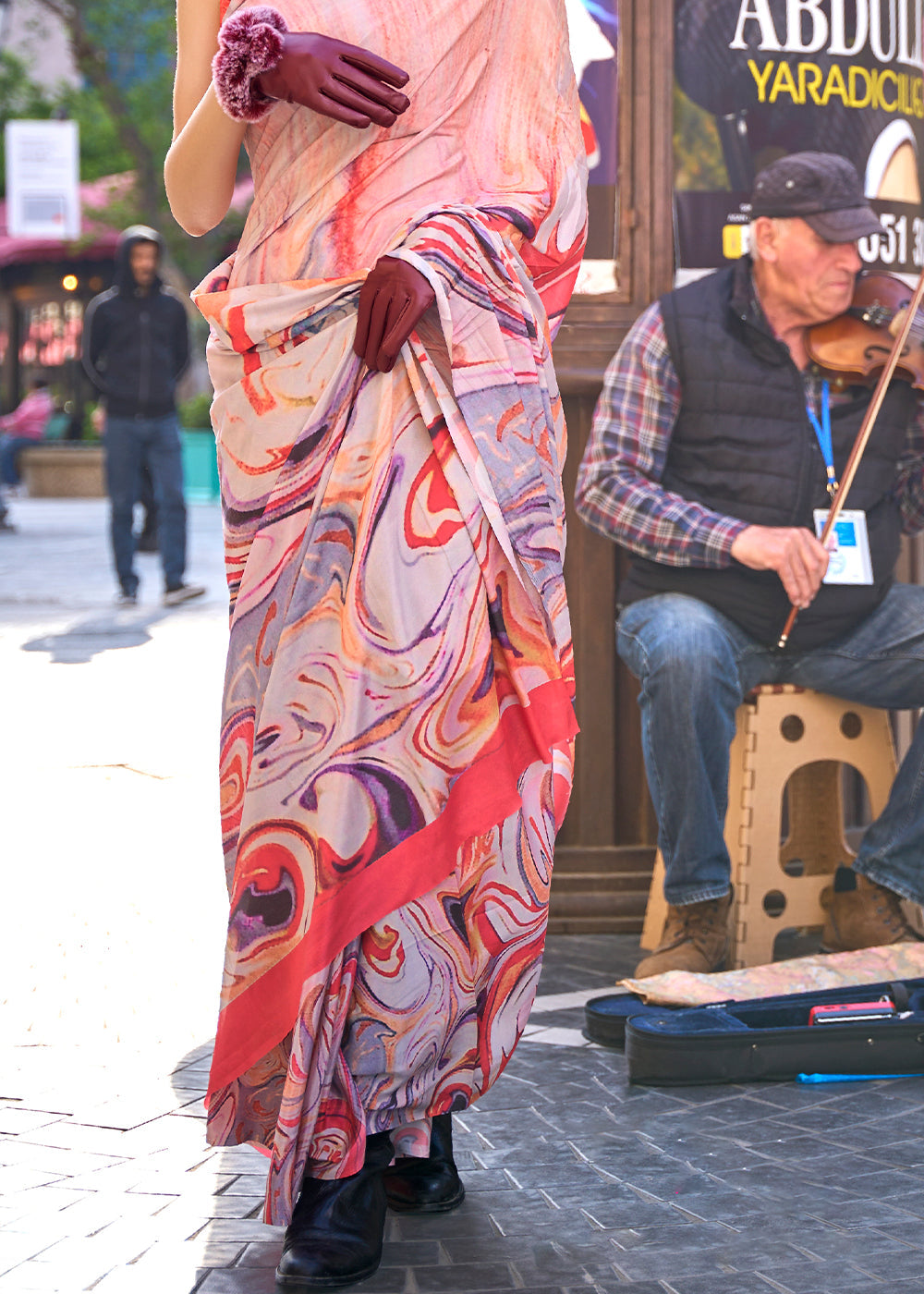 Shades Of Orange Digital Printed Crepe Silk Saree