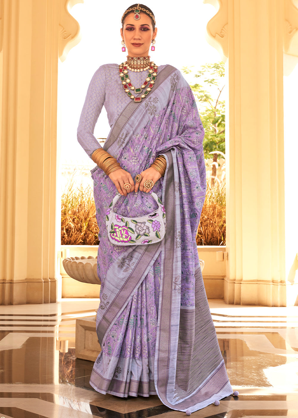 Shades Of Purple Khadi Printed Raw Silk Saree