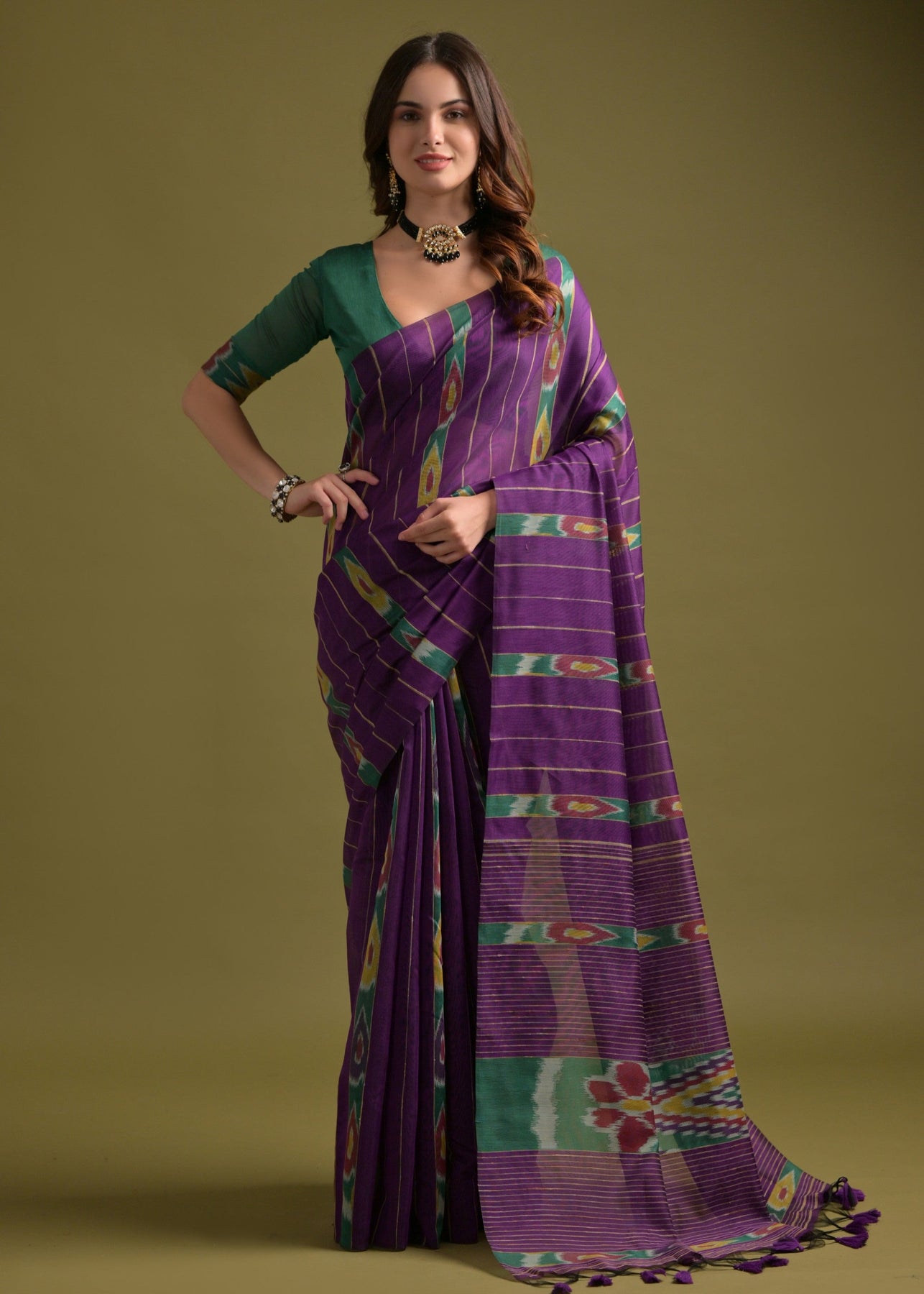 The True Purple Soft Ikkat Cotton Printed Saree is a beautiful blend of traditional craftsmanship and modern style. The rich purple hue, paired with intricate Ikkat patterns, offers a vibrant and elegant look. Made from soft cotton, it ensures comfort without compromising on style. Perfect for casual wear or festive occasions, this saree is a timeless addition to any wardrobe.