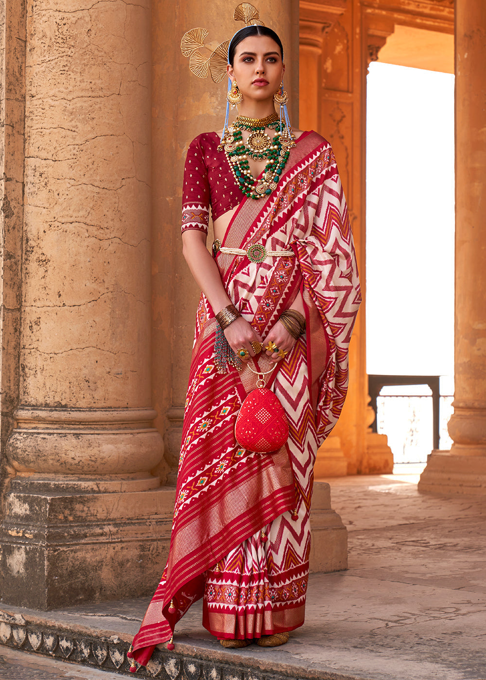 In a striking contrast of Red and White, this graceful silk saree offers a smooth texture and a natural sheen that enhances its overall charm. Perfect for both casual and official occasions, this designer piece has a versatile design that allows it to be styled for different settings. Carry it your infectious smile and win hearts.