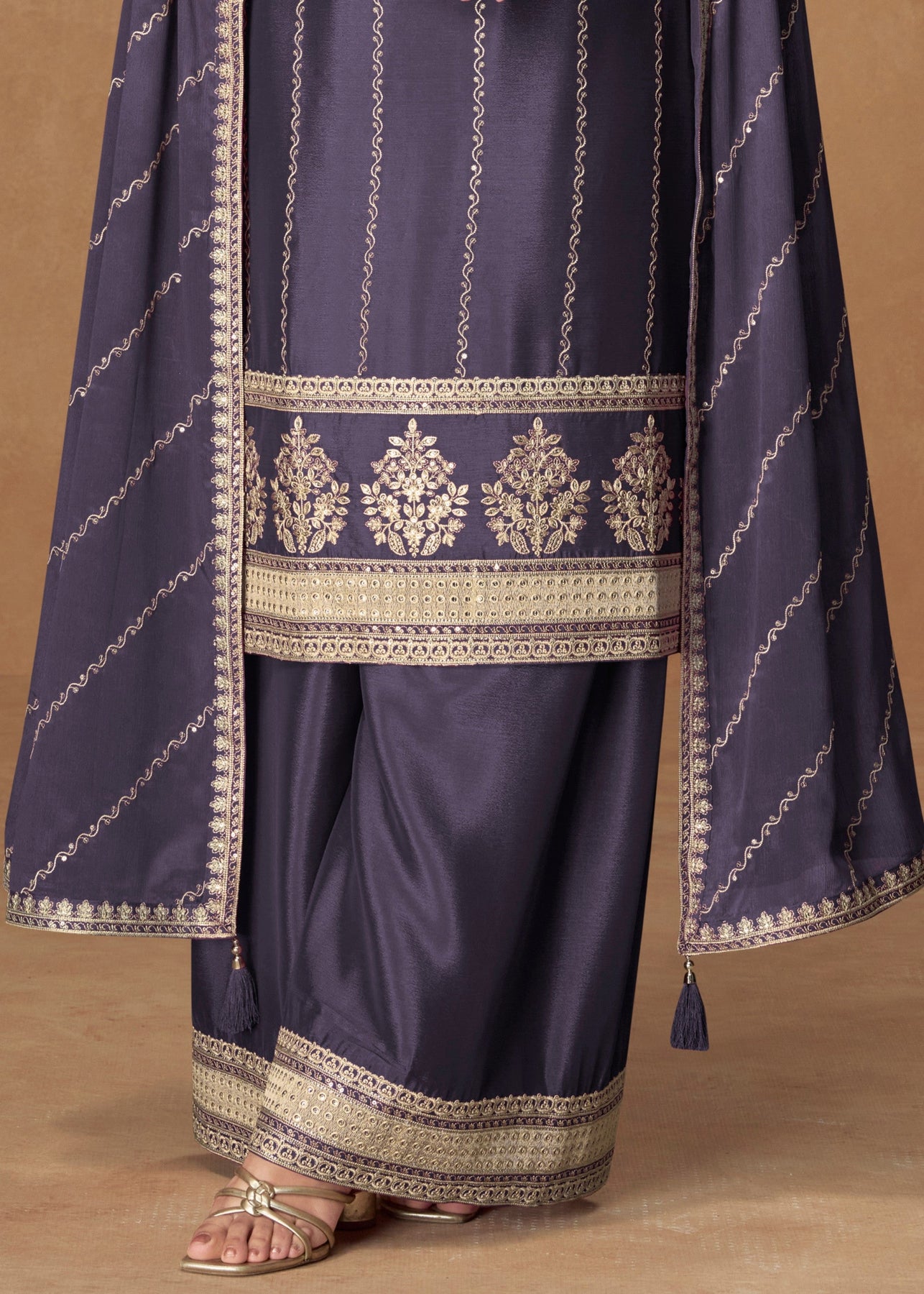 The Navy Blue Premium Chinnon Silk Salwar Suit offers a harmonious blend of luxury and simplicity. With its rich fabric, coordinated design, and versatile color, it’s a sophisticated outfit for festive and special occasions alike.