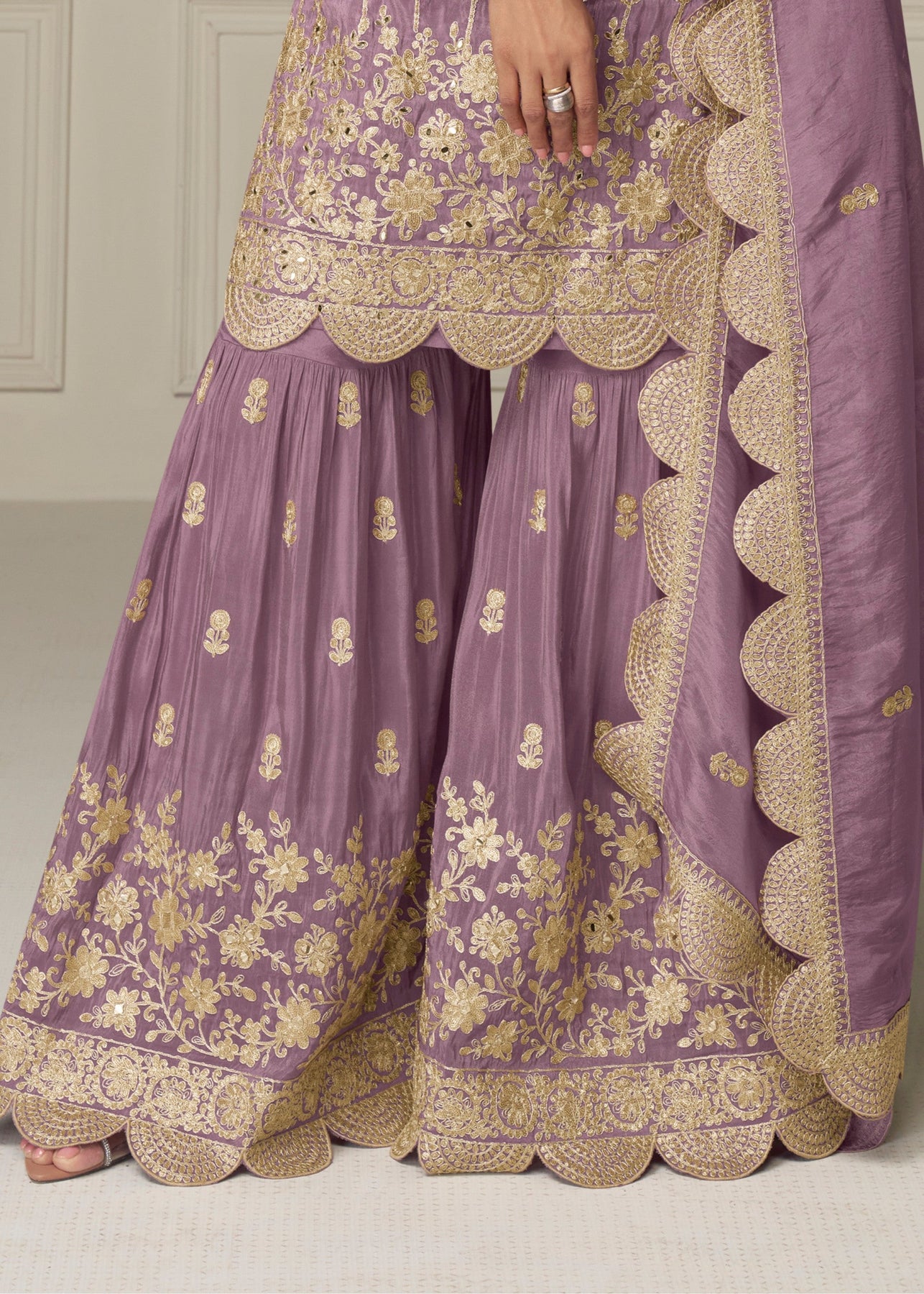 Soft Lavender Purple Silk Salwar Suit With Golden Embroidery